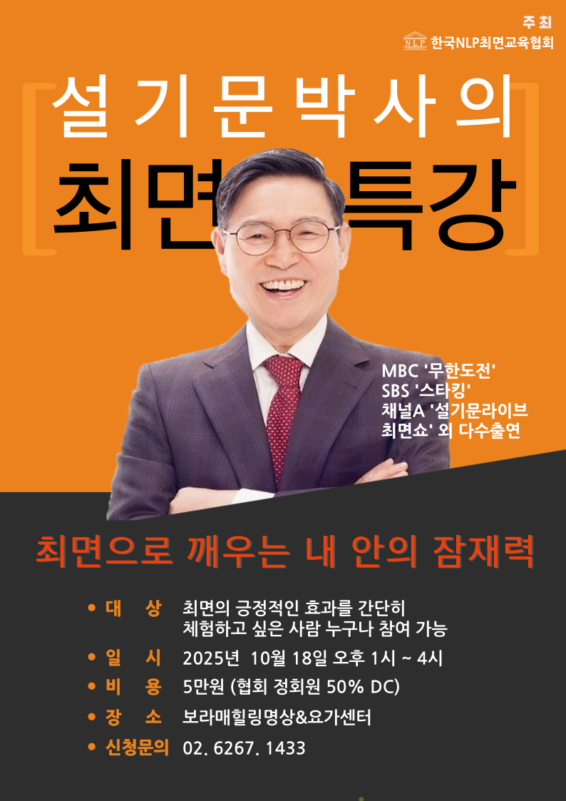 - 신청 및 문의: 010-9534-4598 (설기문 박사)
